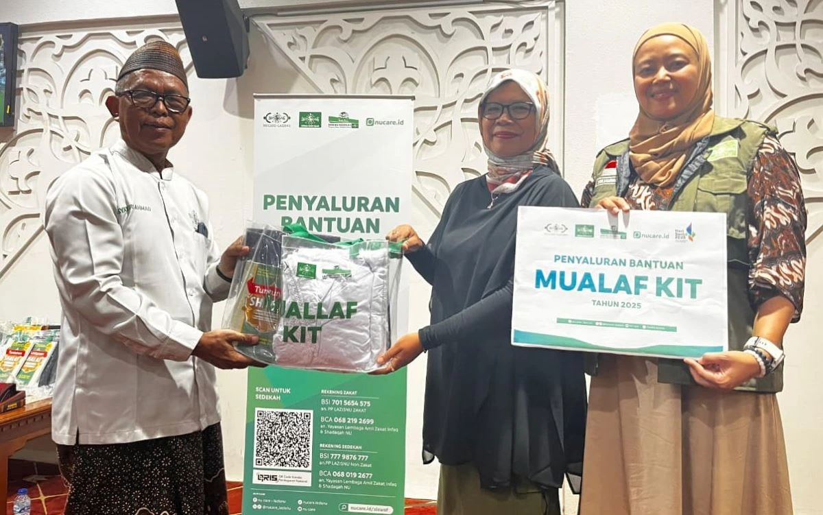 "Ini adalah sedekah dari para donatur NU Care-LAZISNU, yang kami salurkan kepada para mualaf berupa cinderamata seperti buku tuntunan shalat dan perlengkapan shalat," kata dia.