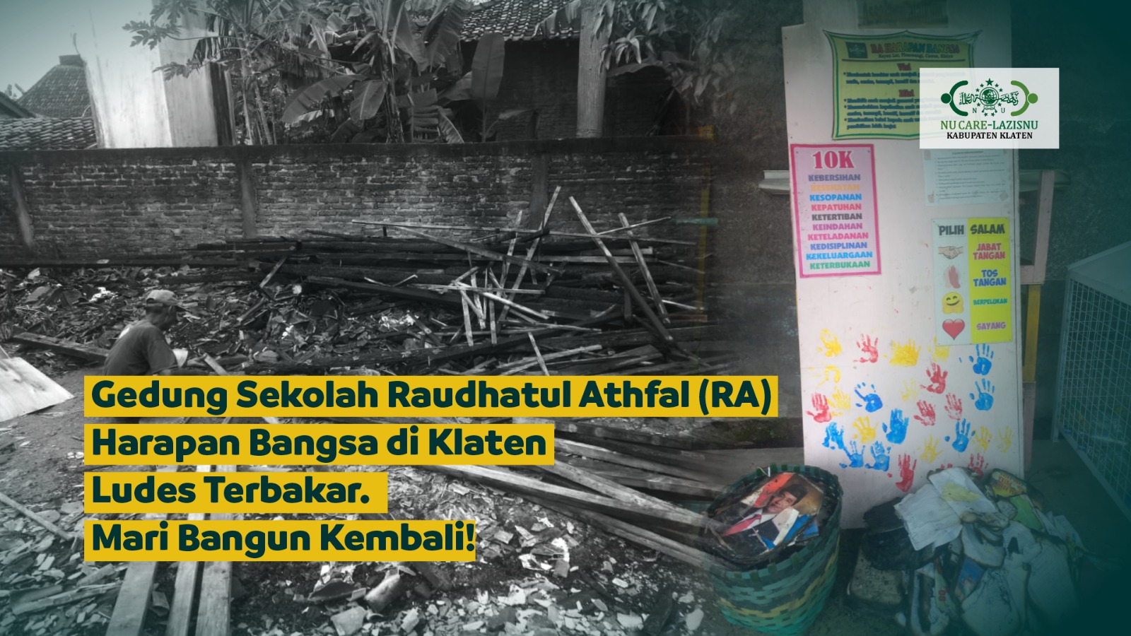 Untuk itu, kami mengajak #SahabatPeduli untuk bersama membantu pembangunan kembali RA Harapan Bangsa agar anak-anak bisa kembali belajar dengan aman dan nyaman. Mari bersama kita wujudkan kembali ruang belajar yang layak bagi mereka, dengan cara: