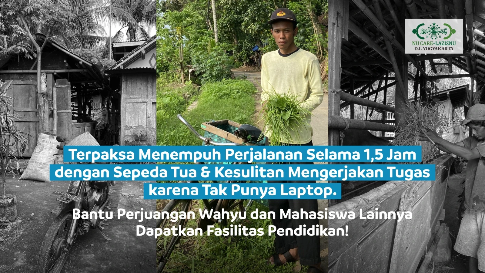 “Saya lahir dari keluarga yang sederhana. Orangtua bekerja keras sebagai buruh dan peternak untuk mencukupi kebutuhan sehari-hari. Jujur, dengan penghasilan orangtua yang pas-pasan, saya cukup kesulitan dalam menyelesaikan tugas-tugas kuliah karena tidak memiliki laptop,” ujar Wahyu kepada Tim NU Care-LAZISNU DIY pada Selasa, 26 November 2024.