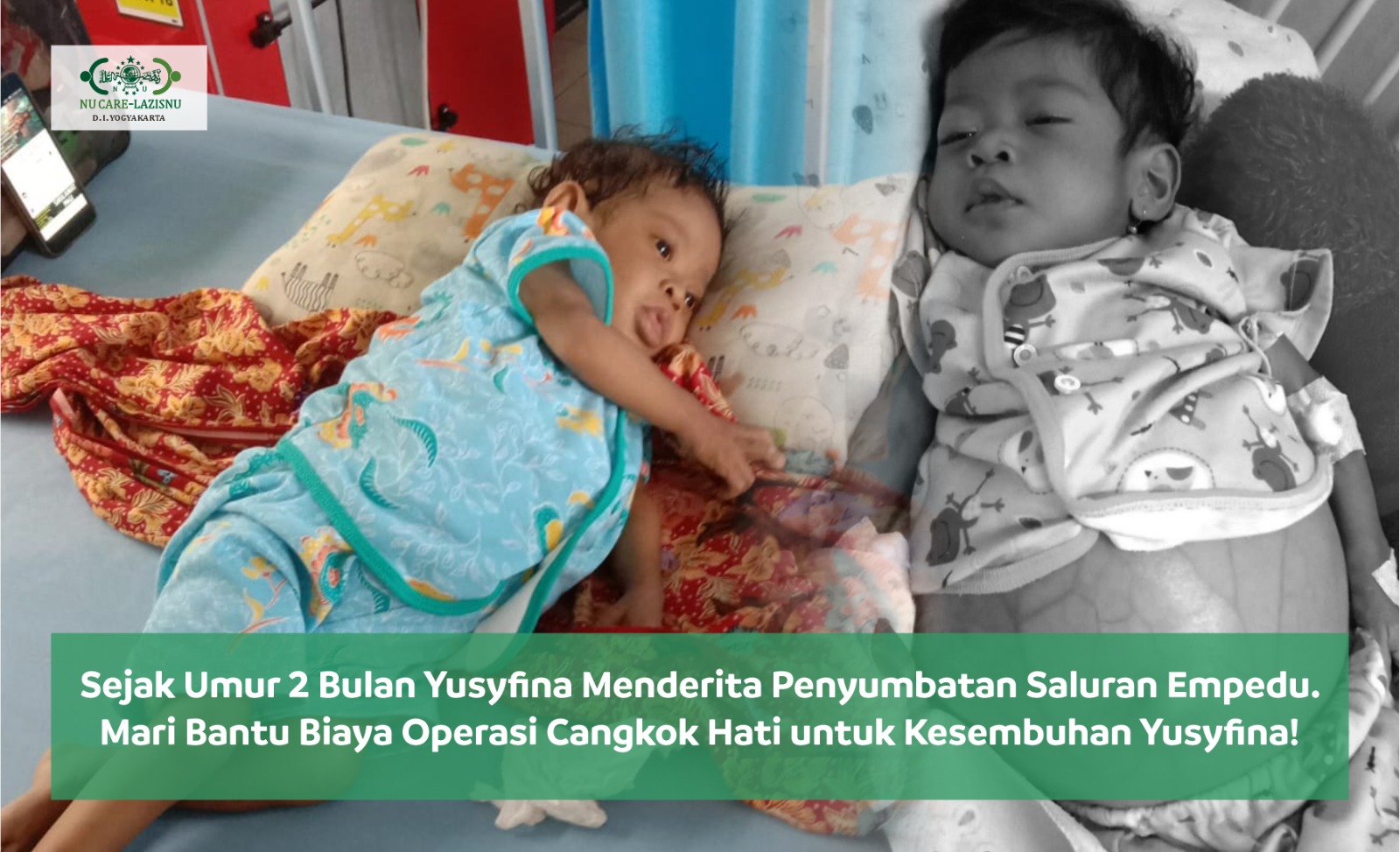 Melalui campaign ini, NU Care-LAZISNU D.I. Yogyakarta mengajak #SahabatPeduli untuk turut membantu Pak Edy agar buah hatinya, Yusyfina mendapatkan penanganan terbaik atas sakit yang dideritanya. Saudara semua dapat membantu untuk kesembuhan Yusyfina, dengan cara: