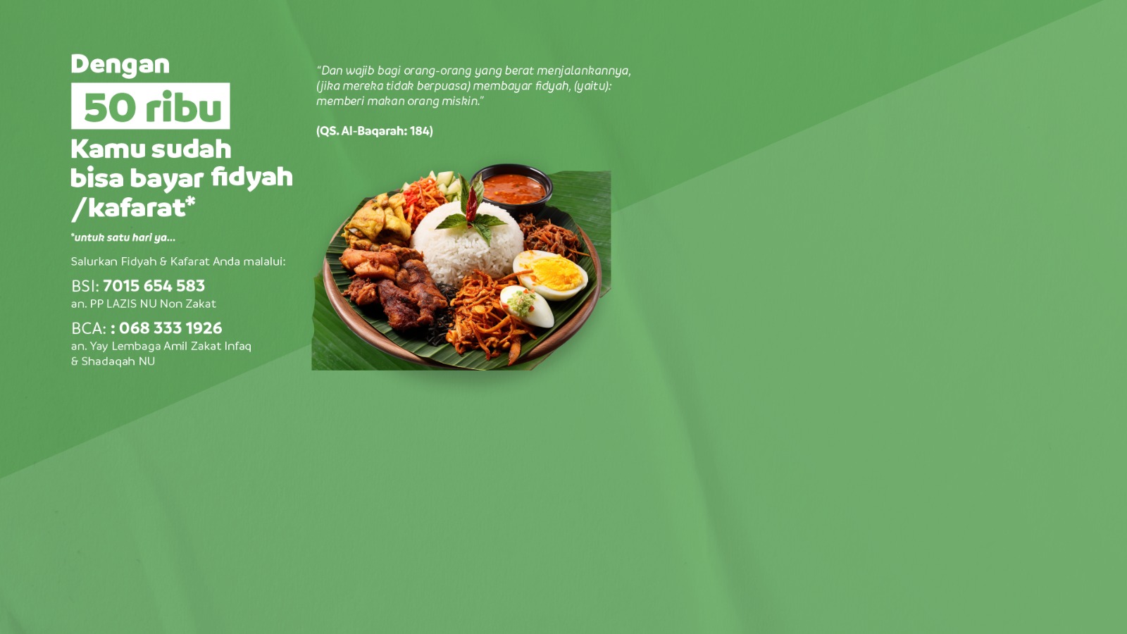 “Terima kasih kepada masyarakat semua yang telah menunaikan dan memercayakan pembayaran fidiah dan kafaratnya melalui NUcare[dot]id. Mari terus tumbuhkan kepedulian dan tebar kebaikan kepada sesama, bersama NU Care-LAZISNU,” ujarnya.
